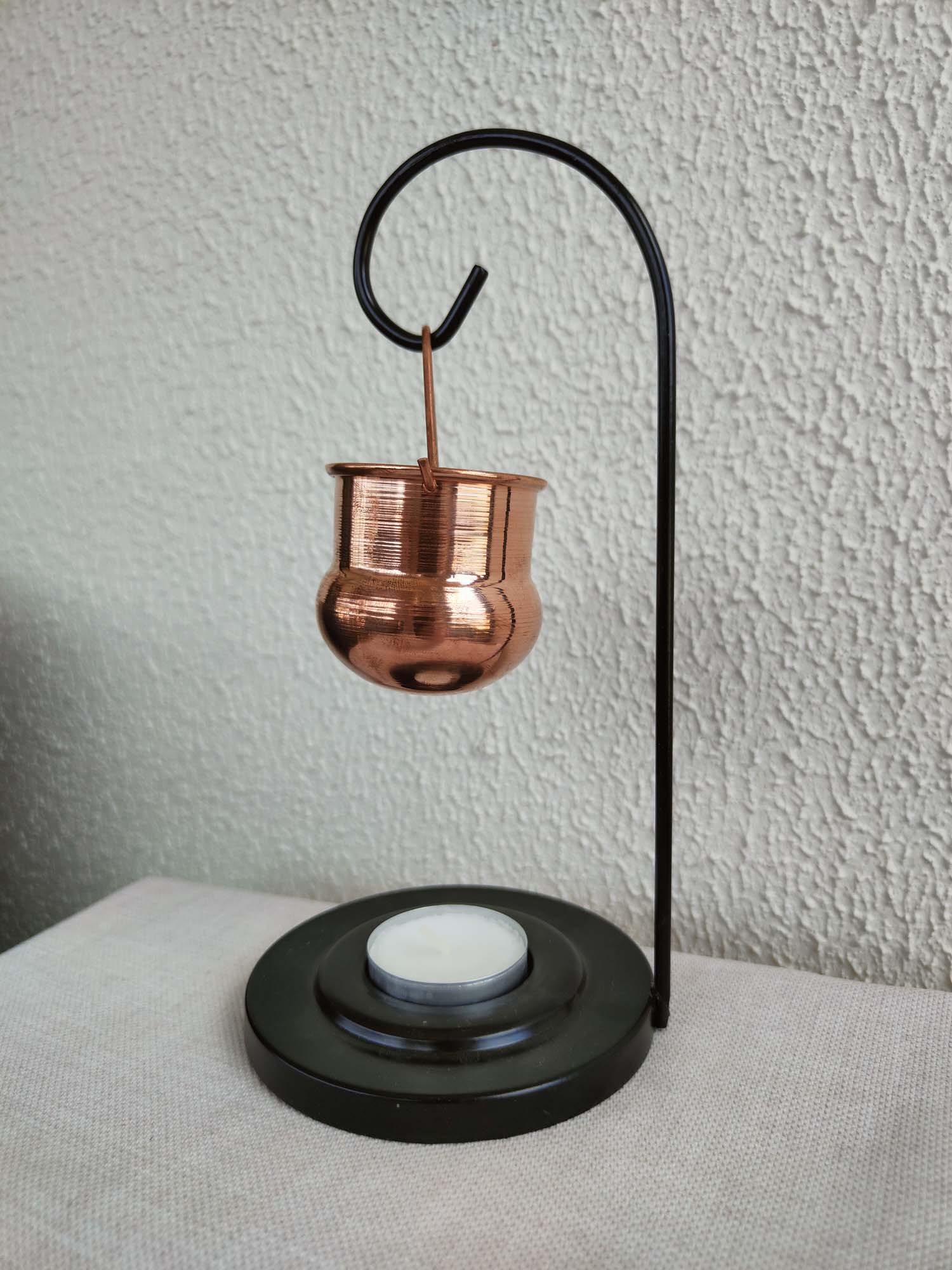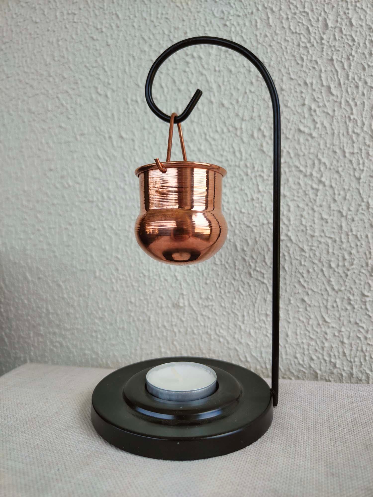 Bakır, rengi ve bulunduğu ortama yaydığı pozitif enerji ile birlikte negatifliği yok etmek için eski zamanlardan beridir ritüellerde yerini korur. Buhurdanlık olarak tasarlanan bu hali hem evinizin dekorunu tamamlayacak, hem de kokuların etkisiyle arınmanızı sağlayacak. 1 adet metal askı standı ve 1 adet bakır mini kazan olarak gönderilmektedir. Kazan el yapımı bakır malzemeden üretilmiş olup, askı standı paslanmaz metal malzemeden üretilmiştir. 10*10*19 cm boyutundadır. Tlight mumun ısısı ile ısınan askılı mini kazan içerisine su ve üzerine aromaterapi uçucu yağlar ekleyerek kullanabilirsiniz. Arındırıcı etkisi olan kokular, bakırın negatif emici etkisiyle daha da güçlü bir şekilde alanınıza yayılacaktır. Kullanılan kokuların uçucu yağ olması tavsiye edilir. Doğal uçucu yağlarımızı mağazamızdan detaylı inceleyebilirsiniz.
