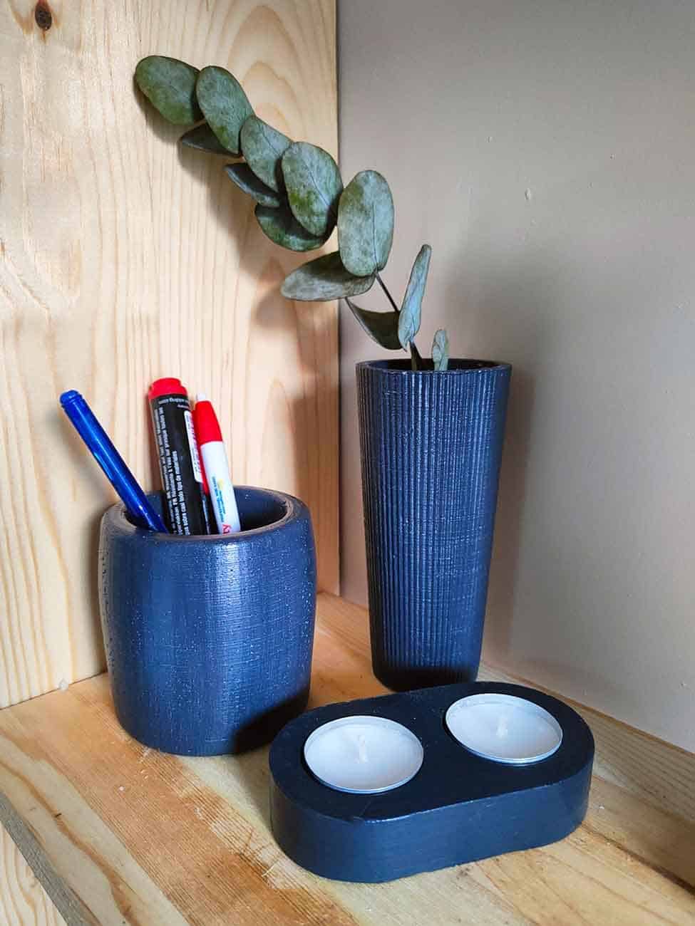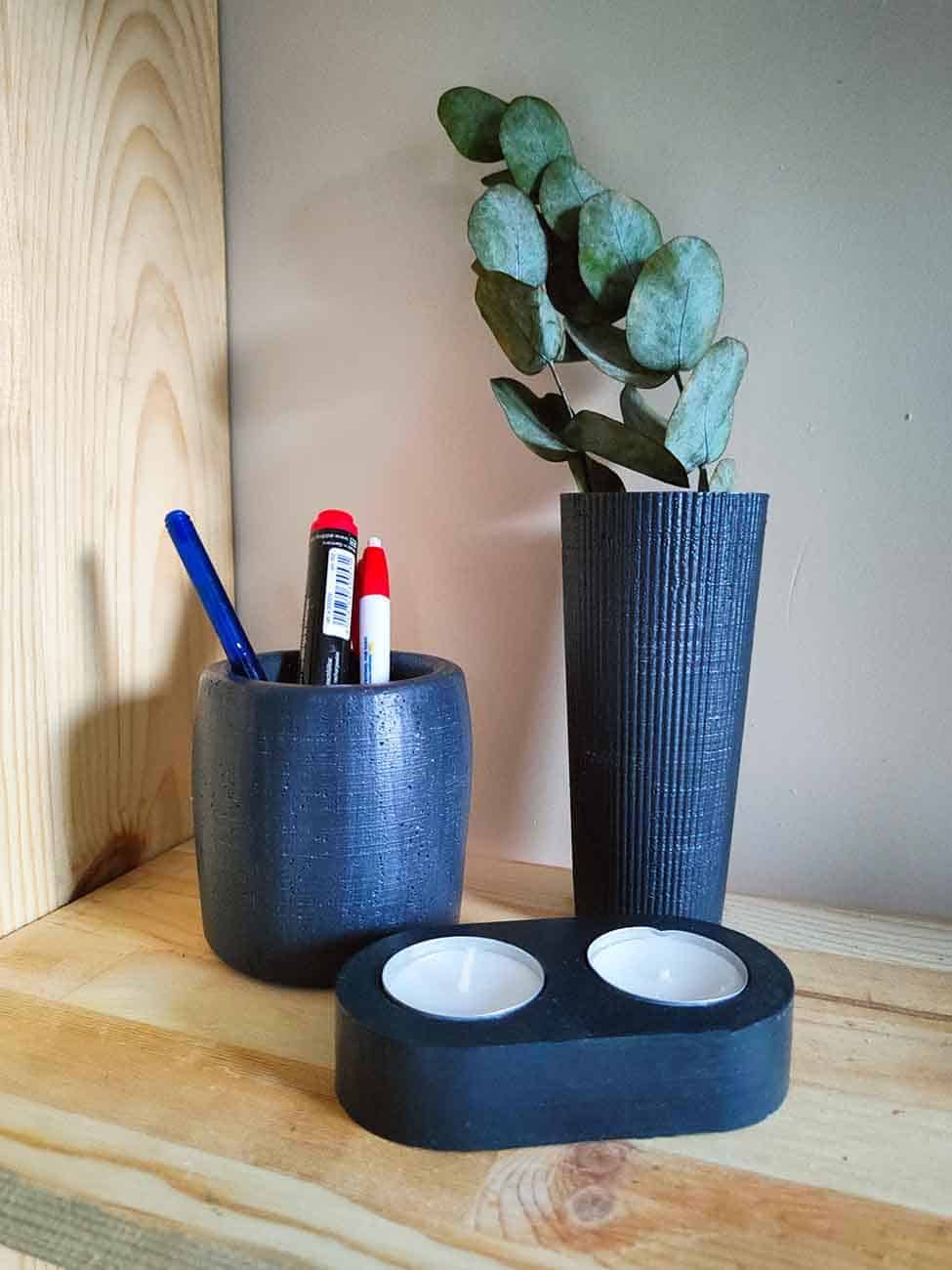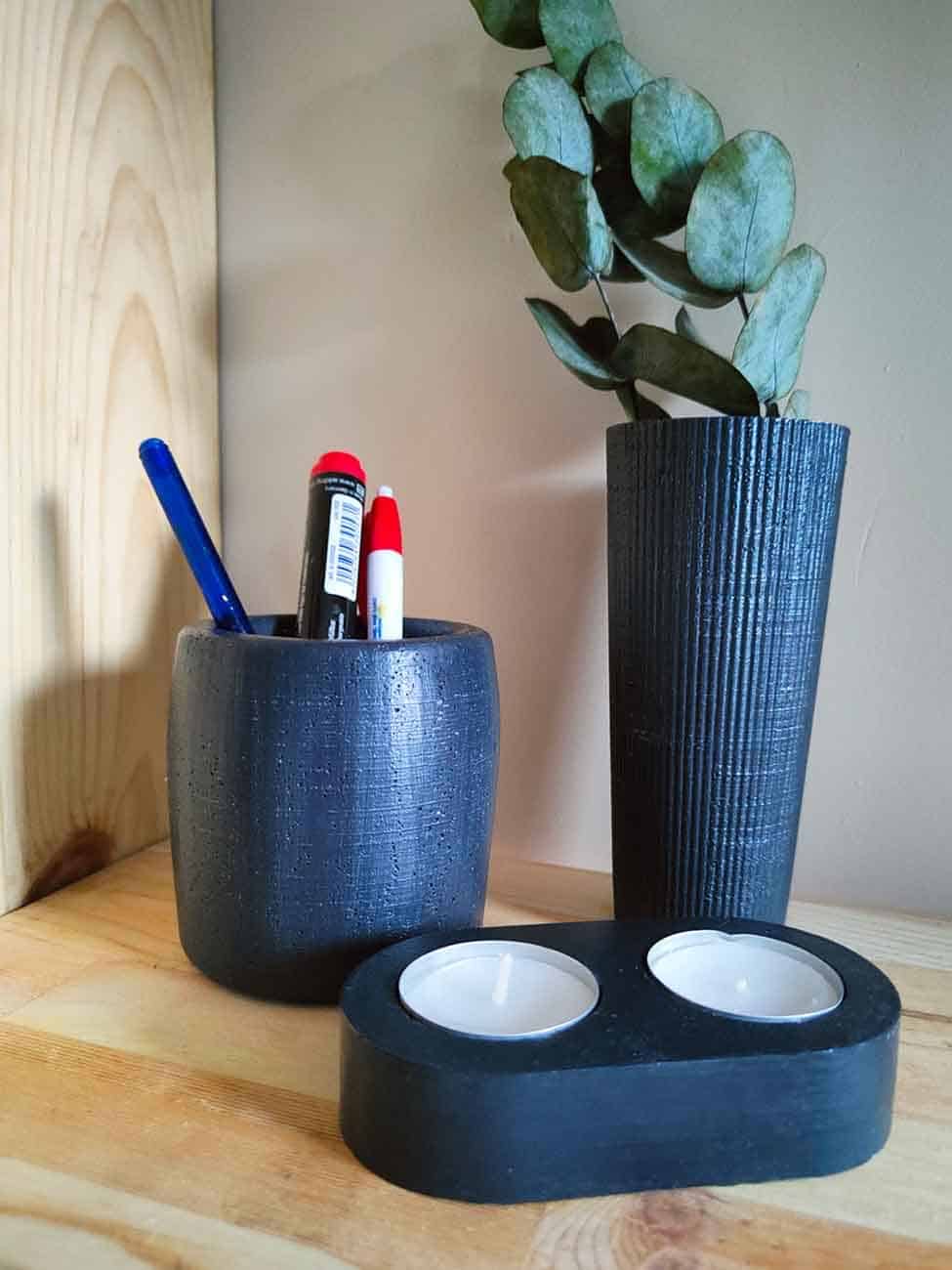 Dekoratif Antrasit Obje Vazo Tealight Mumluk Şamdanlık Bal mumu Beton Ev Dekorasyon Seti Hediye Seti