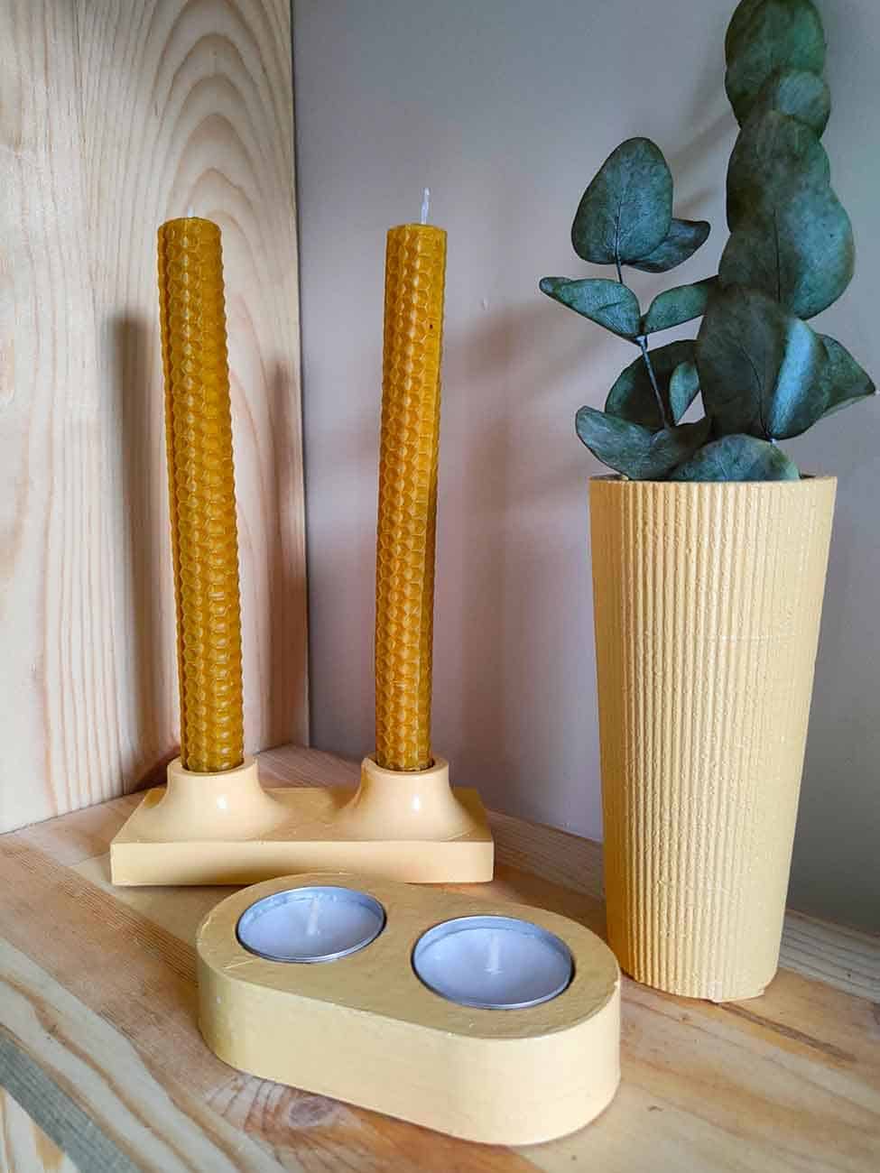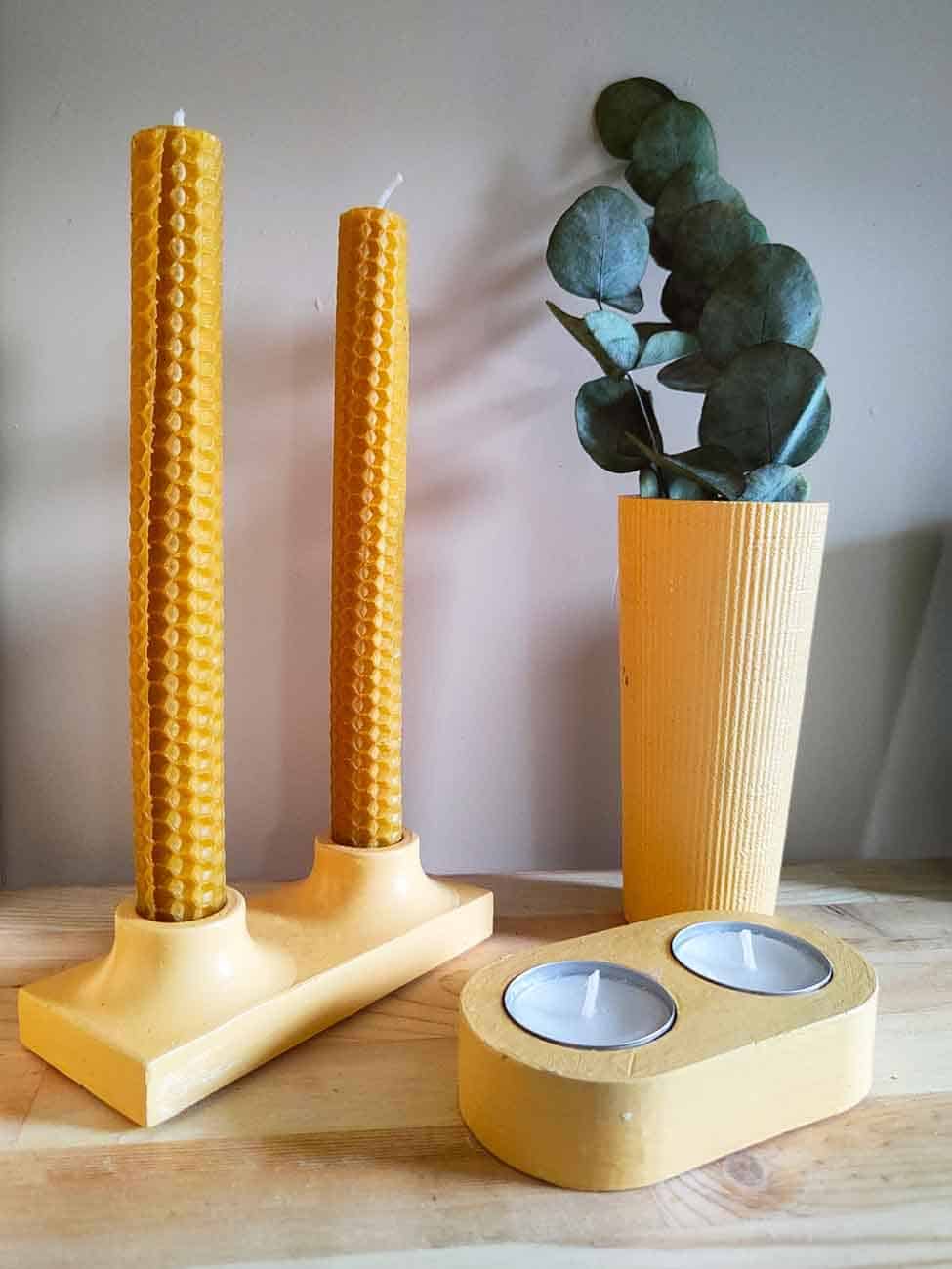 Dekoratif Açık Sarı Hardal Obje Vazo Tealight Mumluk Şamdanlık Bal mumu Beton Ev Dekorasyon Seti Hediye Seti