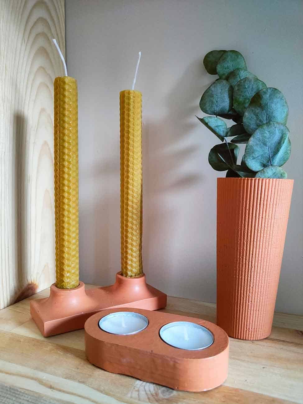 Dekoratif Nude Kahve Obje Vazo Tealight Mumluk Şamdanlık Bal mumu Beton Ev Dekorasyon Seti Hediye Seti