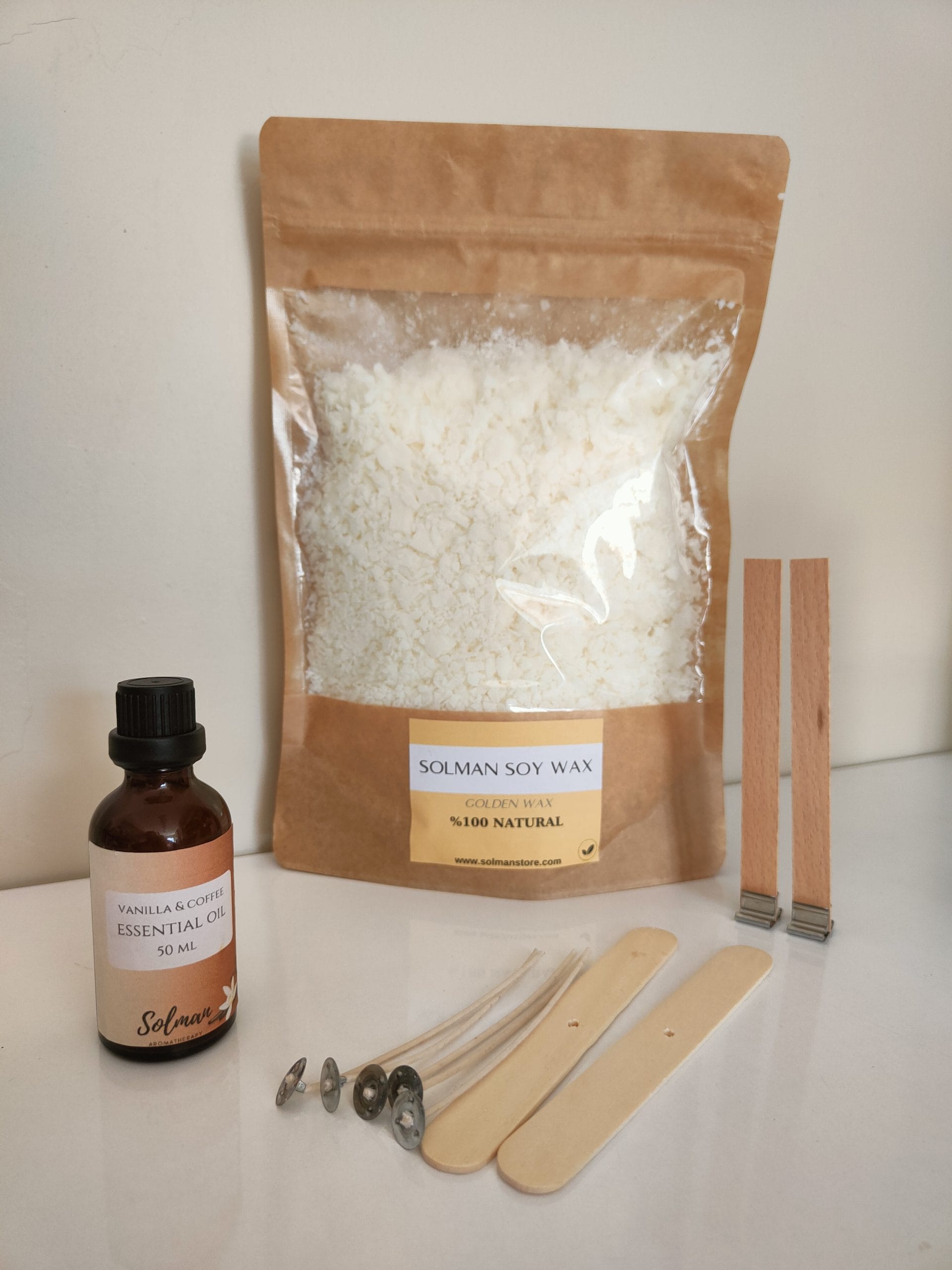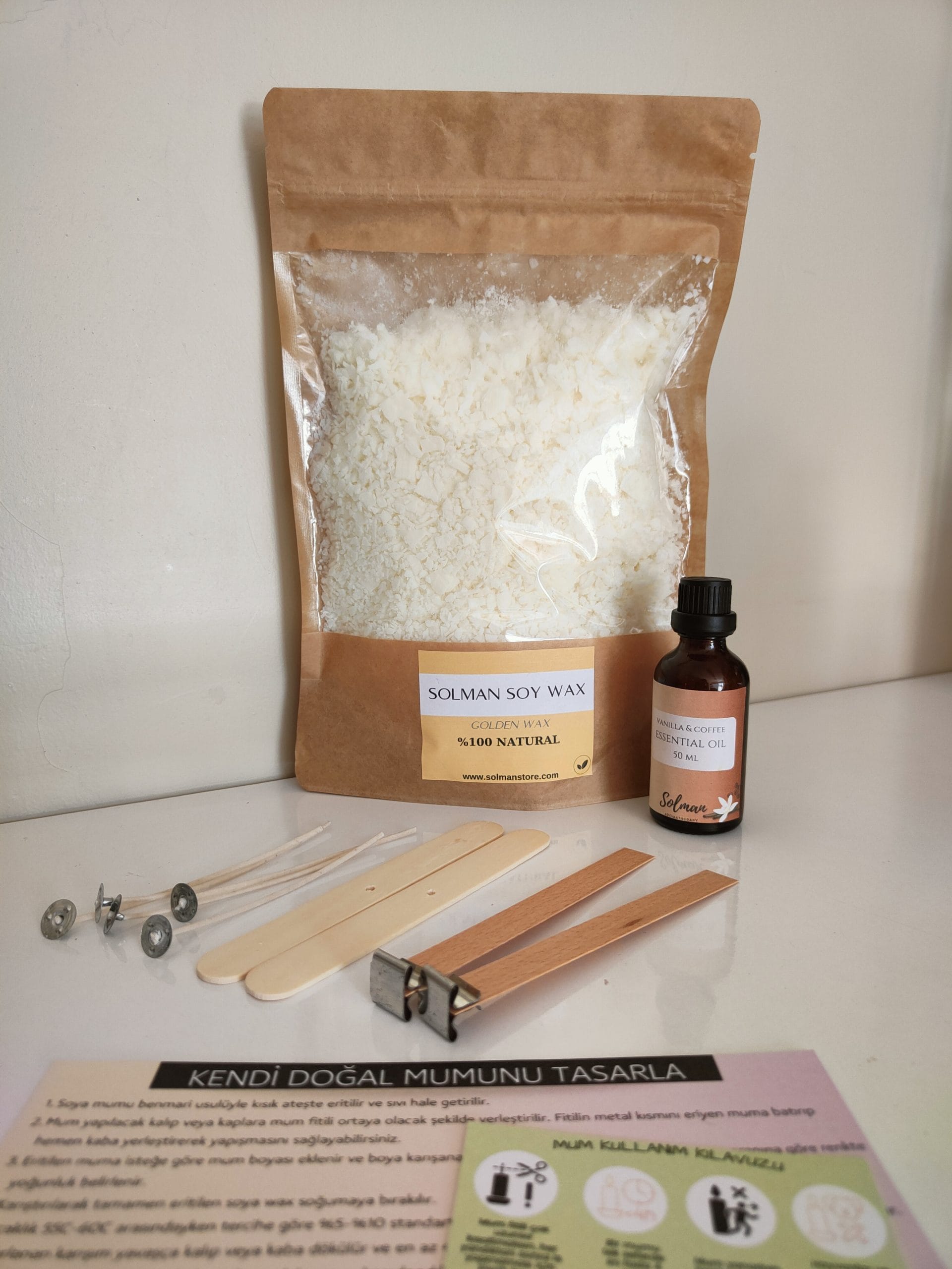 Mum Yapım Seti Natürel Soya Wax Aromaterapi Doğal Mum Yapımı 500gr Mum Yapma Başlangıç Seti Malzemeleri