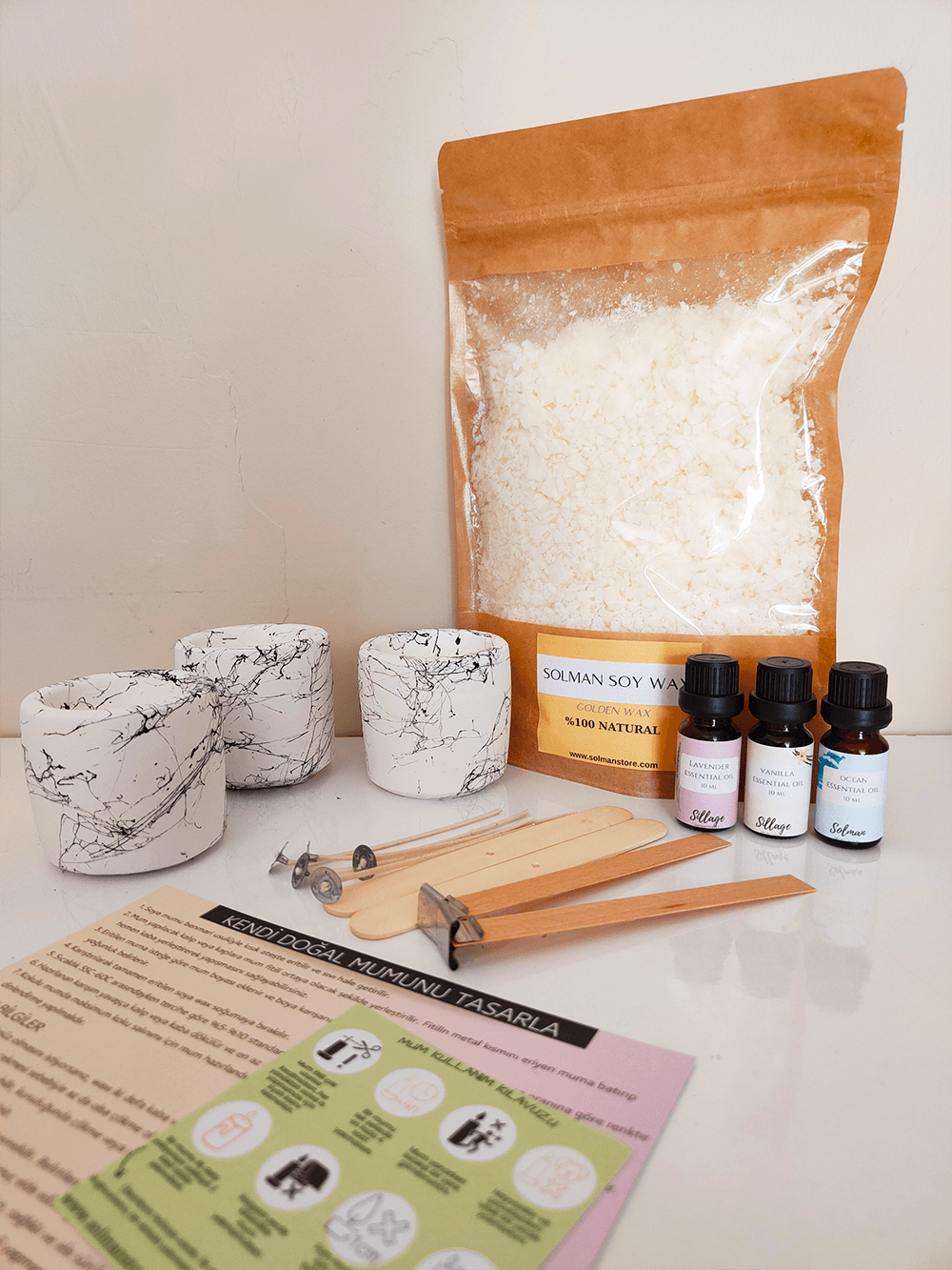 Mum Yapma Seti Natürel Soya Wax Aromaterapi Doğal Mum Yapımı 500gr Mum Yapma Başlangıç Seti Malzemeleri