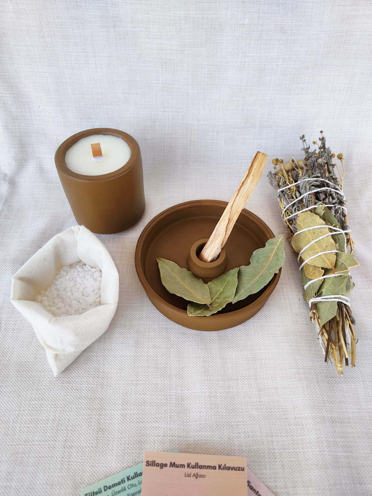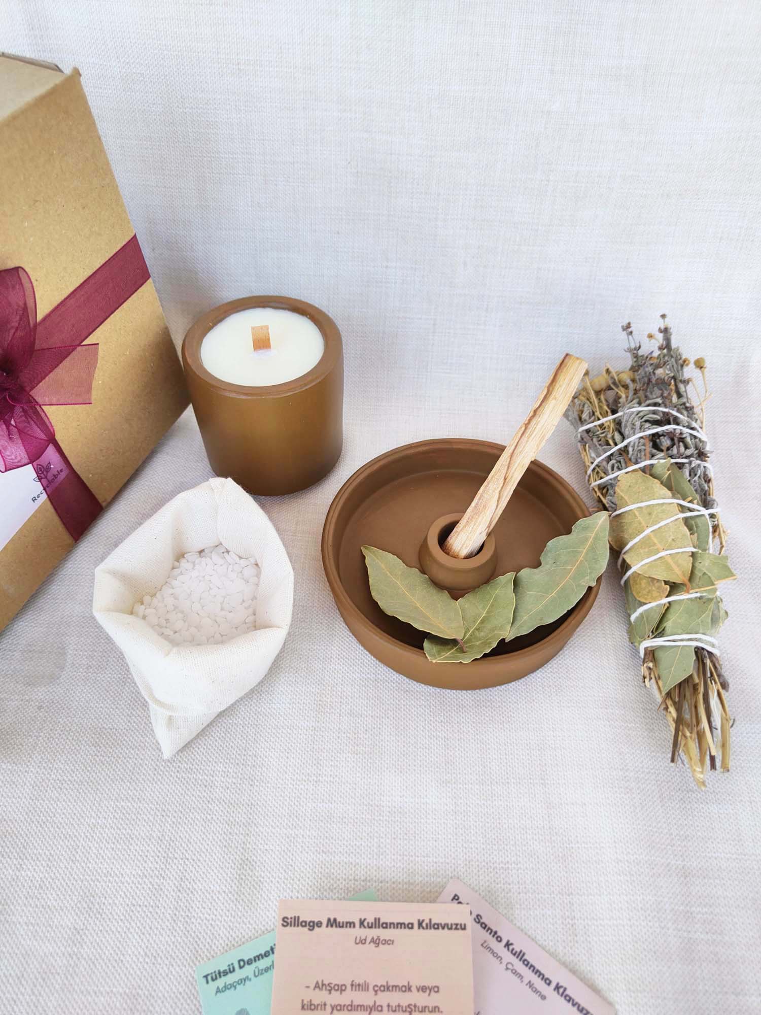 Arınma Tütsülük Set Vegan Ud Ağacı Kokulu Soya Mumu Palo Santo Adaçayı Lavanta Tütsü Seti
