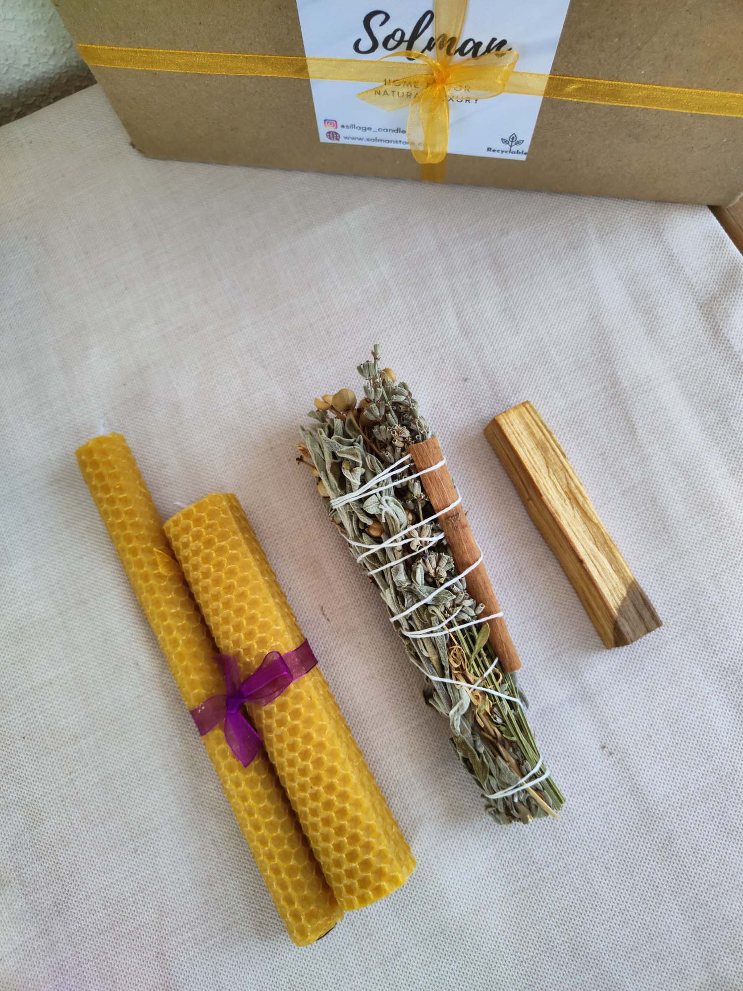 Balmumu Tütsü Set Adaçayı Lavanta Üzerlik Otu ve Palo Santo Ağaç Tütsü Set