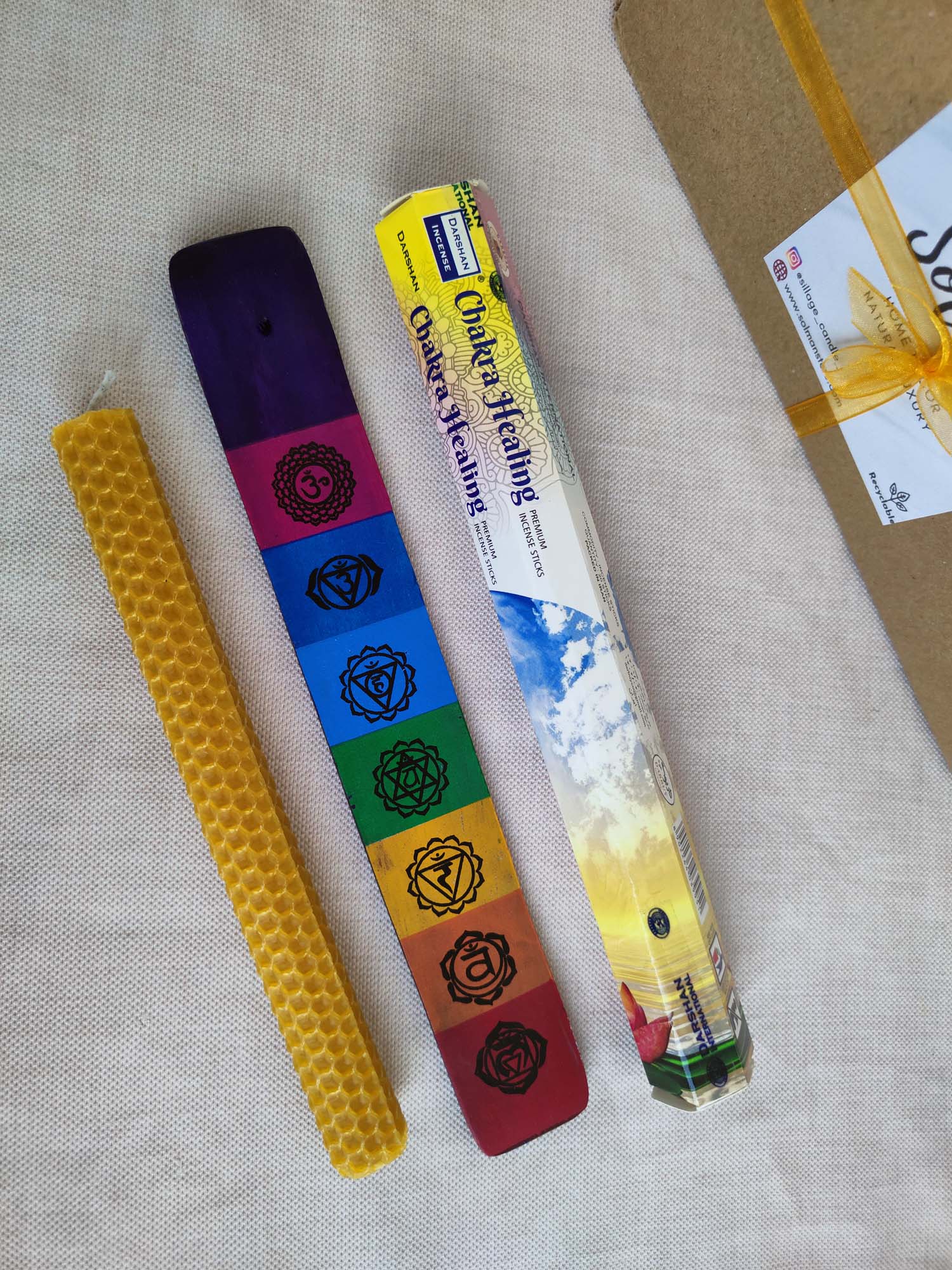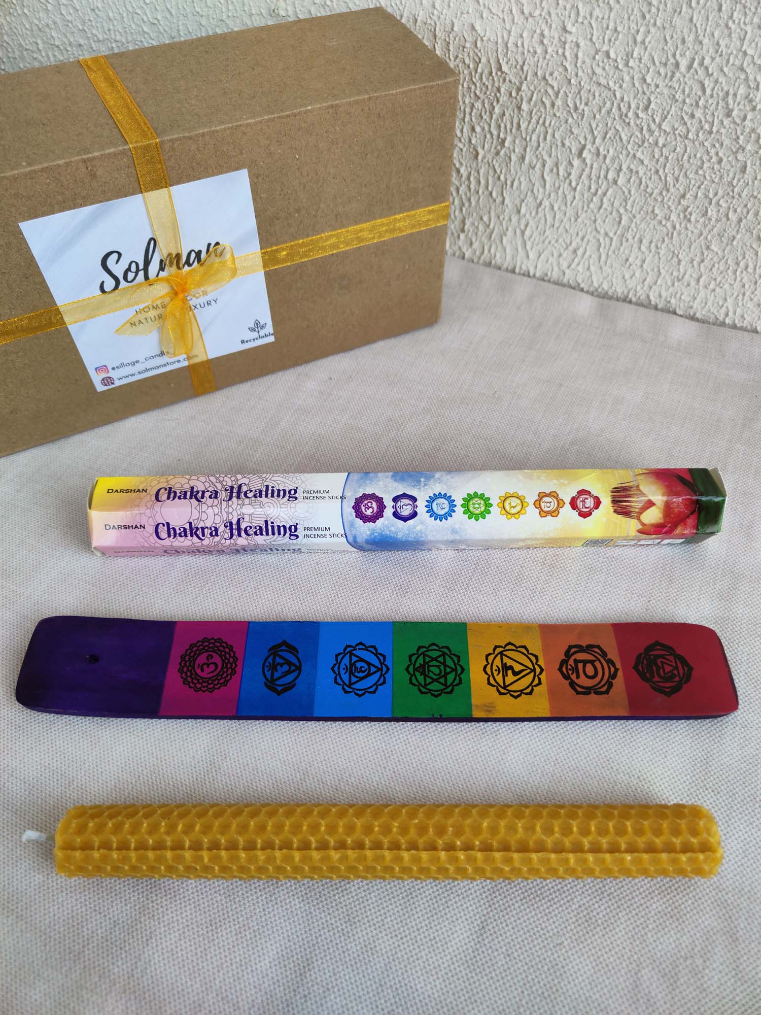 Çakra Meditasyon Tütsü Kayık Tütsülük Chakra Healing Çubuk Tütsü ve Bal Mumu 3lü Set