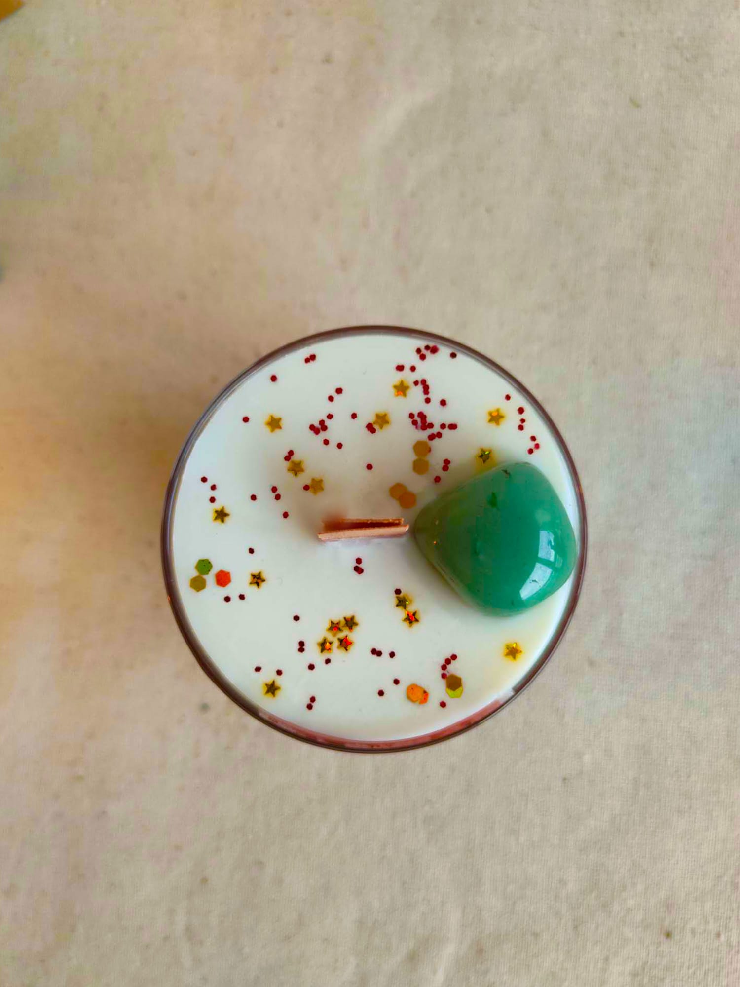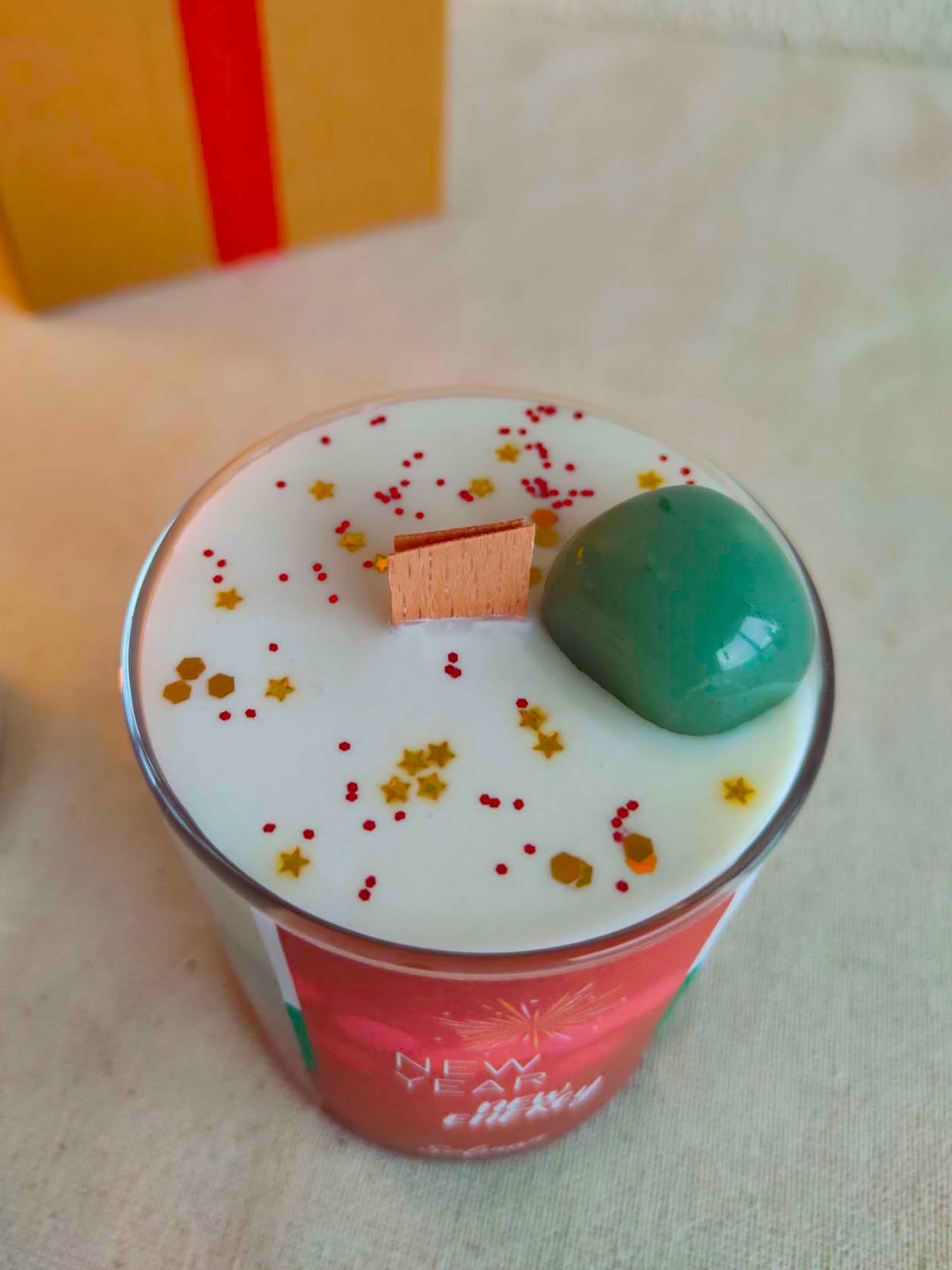 New Year New Energy Aventurin Taşlı Yılbaşı Hediyesi Şans Mumu Yeniyıl Hediyelik Kokulu Soya Mum Kurumsal Hediyelik