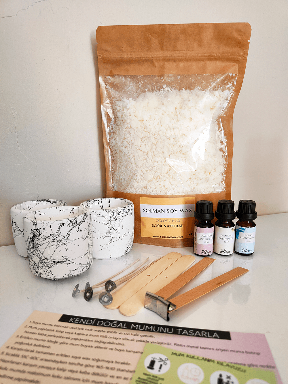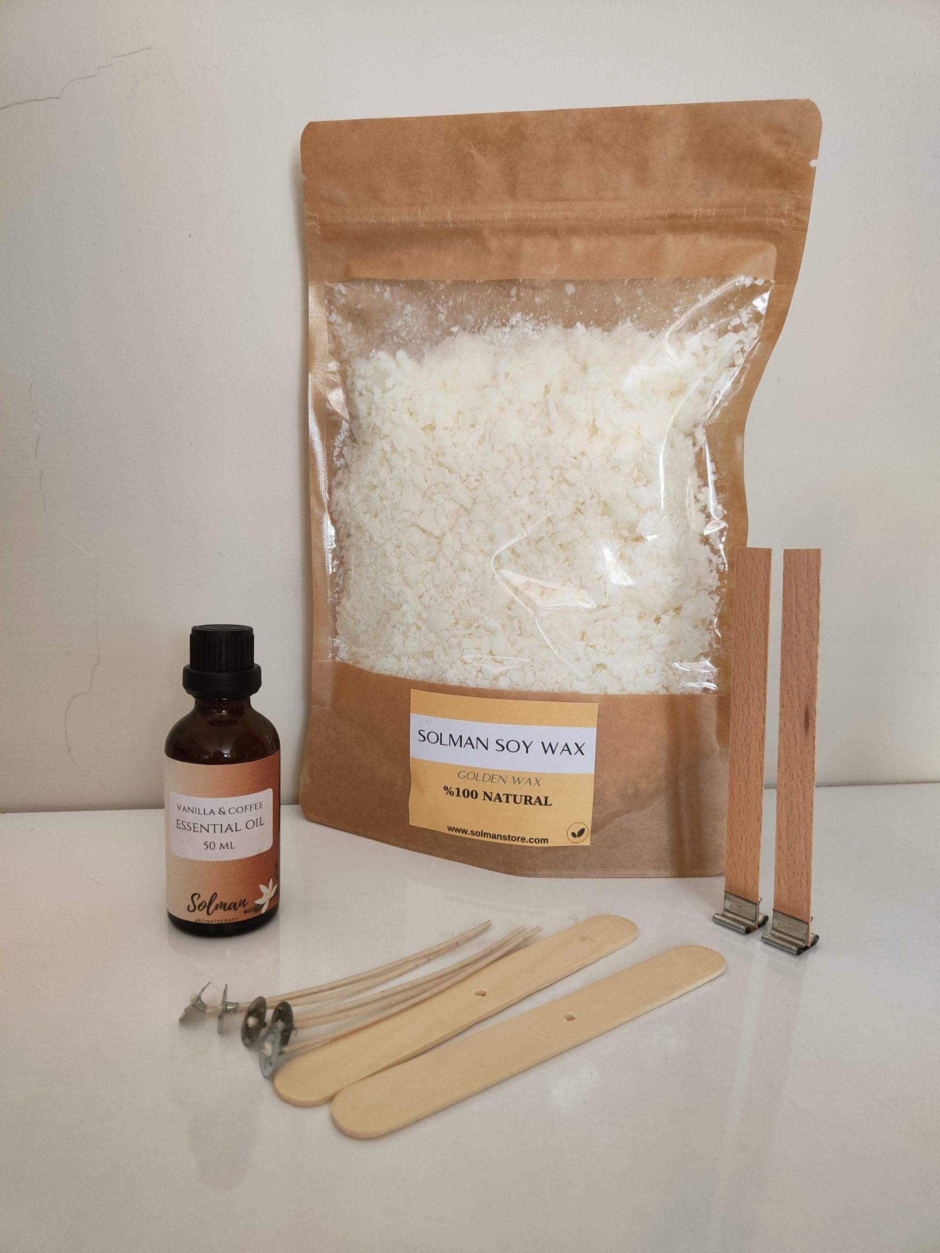 Mum Yapma Seti Natürel Soya Wax Aromaterapi Doğal Mum Yapımı 500gr Mum Yapma Başlangıç Seti Malzemeleri